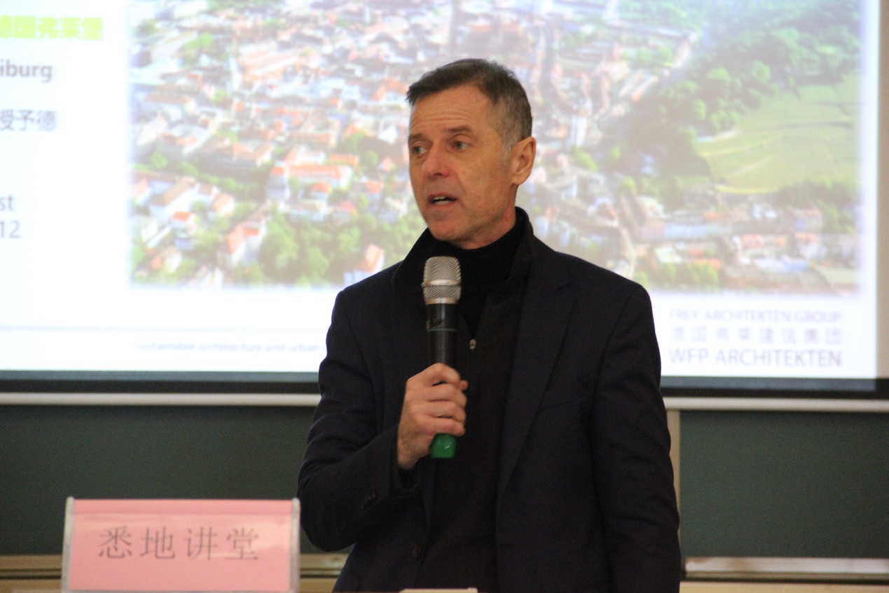 讲座尾声,Frey专家耐心地逐一解答了现场多位师生的提问,并与沈景华教授一起向现场师生们拓展了更多可持续的绿色建筑的前沿知识,通过绿色建筑来协调人与环境、人与人之间的发展关系。通过此次讲座,同学们对于如何从绿色可持续发展的目标出发进行设计有了更好的理解,也产生了更多对于绿色低碳建筑的思考。