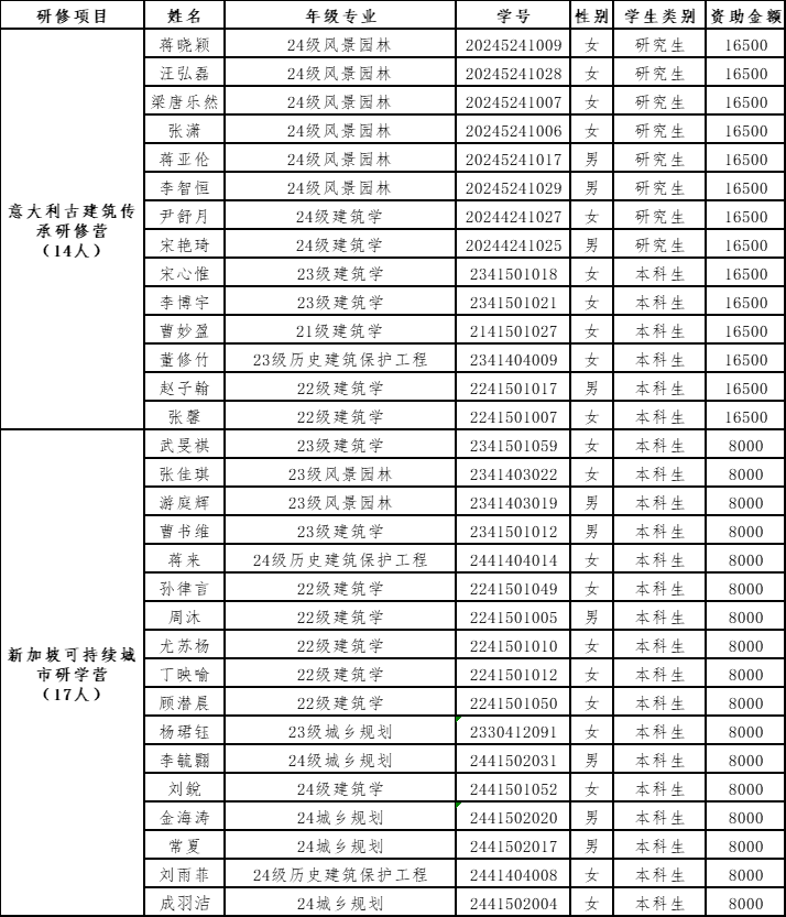 2025年学生暑期专业研修奖学金获奖名单公示