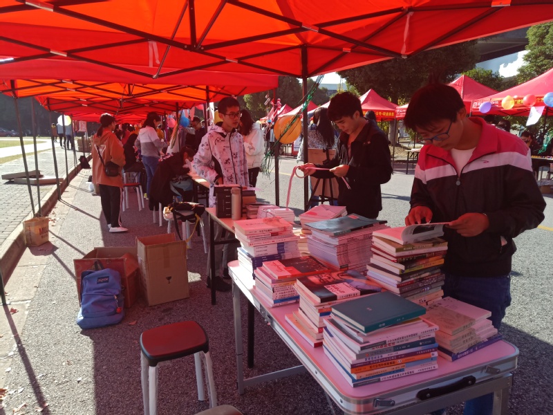 而在该展区的一本书·一份爱的募捐活动中,同学们提前收集了书籍,并发起捐书倡议, 号召同学现场捐书,并为捐书者颁发捐书证和纪念小礼品。同时将同学的旧书进行义卖,所得款项部分捐给了惠寒基金,勤助中心的同学们,利用自己的努力,既实现了旧书的循环利用,致力于绿色校园的建设;也为公益事业作出自己的应有贡献。