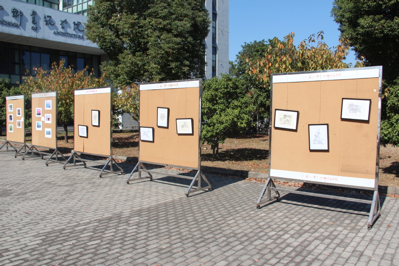 在该展区内还有集中展示了今年暑期建筑学子的黄山写生作品,一笔一画,或粗犷或细腻,勾勒出徽派建筑的美。