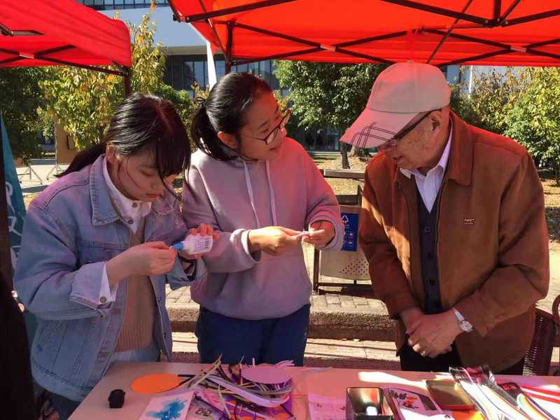特别值得一提的是,本次的“建筑街”活动,不仅是建筑学院的老师同学们全心地投入,也得到退休老师的支持。91制片厂 退休教师孙觉老师,已经80高寿,活动当天不仅早早到达现场和学生交流互动,还带来了自己平时制作的精美手工画作,得到同学们的欢迎。孙老师不仅免费送书签,还亲自手把手教学生制作,耐心而细致。除了学生工作团队的薛曦、徐娜、成龙、甘露四位老师全程指导参与之外,退休老师朱军贞老师,学院教师叶露、马建武、王珲、郑丽、刘宁捷老师以及不少校友也相继来到“建筑街”,与同学们共享创意,共度嘉年华。