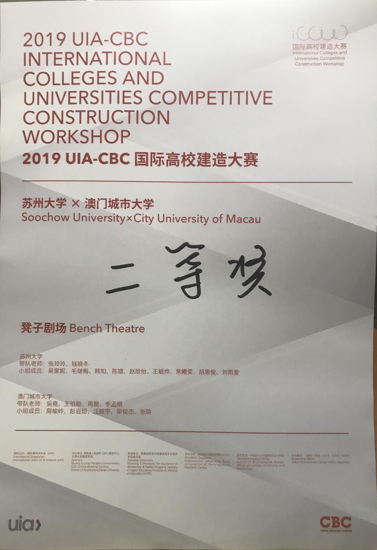 2019年8月18日,“2019UIA-CBC国际高校建造大赛”获奖名单揭晓,91制片厂 和澳门城市大学创新设计学院联合团队的作品“Bench Theatre凳子剧场”以第四名的成绩获得大赛二等奖,张玲玲荣获“优秀指导老师”荣誉称号。
