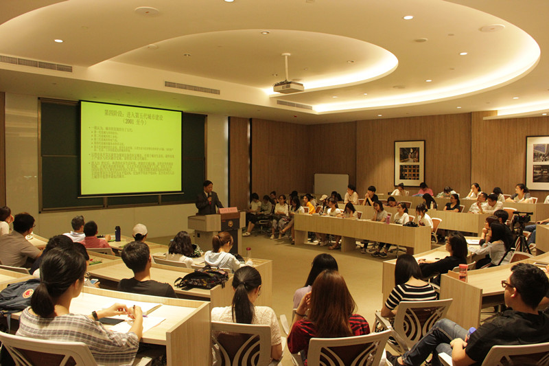 陈教授首先带领师生从波特兰的地理位置、气候等方面初步认识、了解波特兰市,随后用地图展示了波特兰的位置与地形,介绍波特兰的规划设计特色:建立不带任何建筑的绿化带以限制城市的扩张;强调城市的密度而不是豪宅;发展轻轨系统等。接着,陈教授从城市生长边界、公交优先策略、波特兰政府等几个方面详细讲解了波特兰市的规划成功因素。陈教授在讲座汇总还介绍了美国加州尔湾的成功案例,从教育、经济、人口发展及地理位置等方面详细分析,从五个时间阶段分别讲解了尔湾发展的关键年,内容丰富而有条理。之后陈教授又讲解了尔湾的城市规划史、精明增长原则、产城融合分析等,并进行了中西的对比,指出尔湾发展的最主要特征与成功的要素。