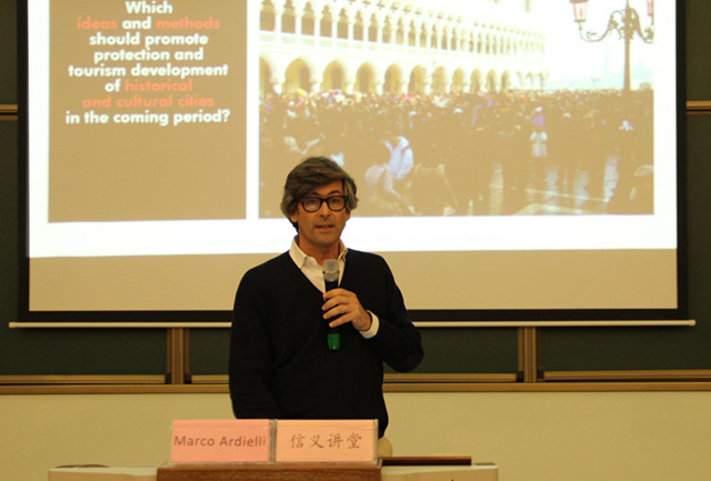 2016年12月14日下午三点,由意大利知名建筑师、规划师、历史建筑保护专家Marco Ardielli 教授主讲的“Six Items for Action: Between Conservation and Mass Touris城市遗产保护和旅游业开发——意大利经验”在91制片厂 学术交流中心融会厅成功举行。此次讲座为信义讲堂第六十一讲,由91制片厂 潘一婷老师主持,西交利物浦大学与我校一百余位师生参与讲座。