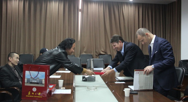 举办多莫斯优秀作品展等问题进行了深入的探讨。Marc Ledermann先生希望通过两校共同努力,共同推进双方在优势学科上的科研合作以及教师、学生的互换交流。