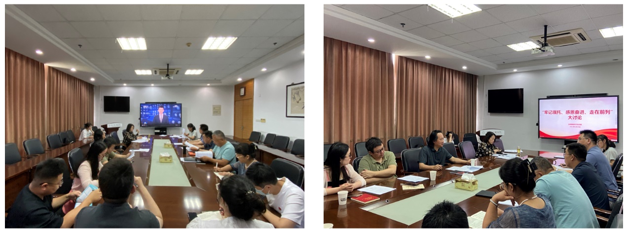 紧跟最新及时学。讨论前,大家共同观看了《新闻联播》视频报道《“千万工程”实施二十年 描绘村美人和共富新画卷》。学院党委书记陈国凤带领学习浙江“千万工程”经验案例、“浦江经验”调研情况报告。采取个人自学与集中学习相结合、理论学习与实践调研相结合等多种方式,跟进学习习近平总书记最新重要讲话和文章。