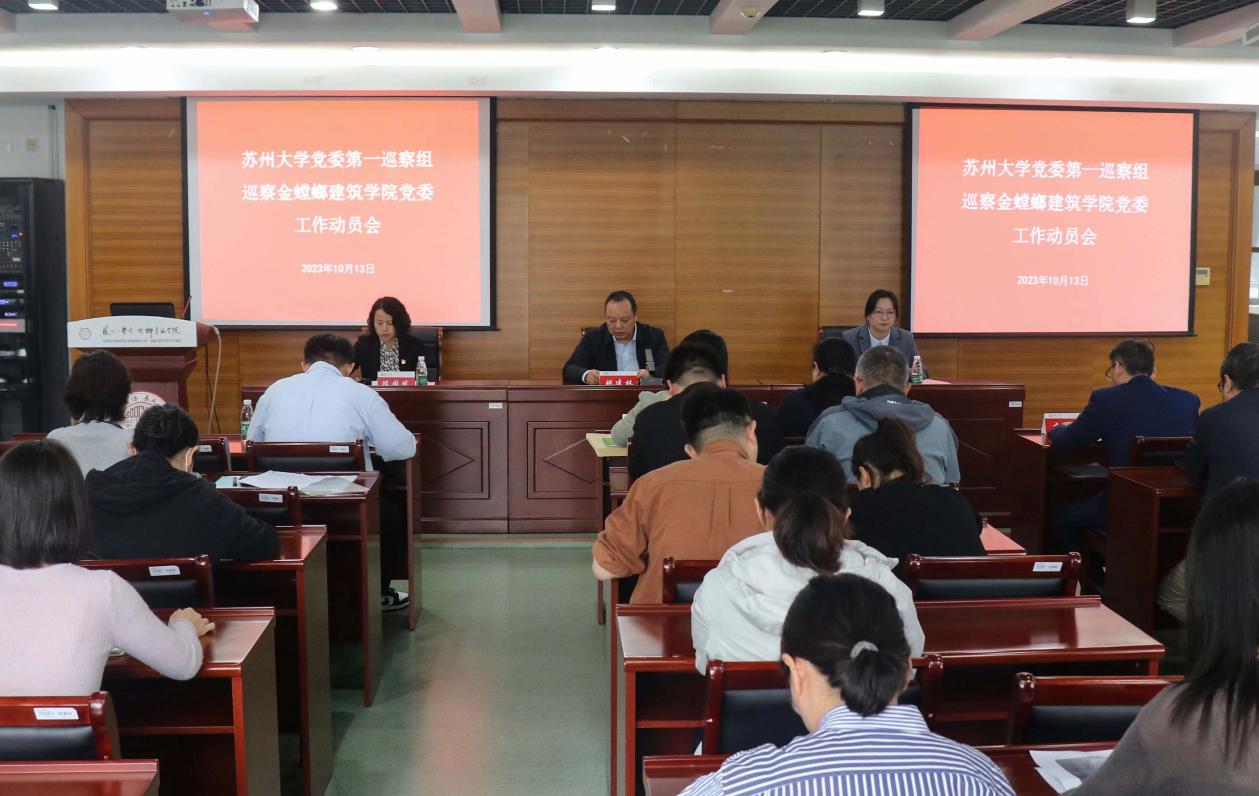 按照学校党委统一部署,校党委第一巡察组将于10月13日至10月26日,对金螳螂建筑学院党委工作开展巡察。10月13日下午,巡察工作动员会在独墅湖校区C01-1207会议室举行,第一巡察组全体成员、金螳螂建筑学院党政班子成员和全体教职工参加会议。动员会由金螳螂建筑学院党委书记陈国凤主持。