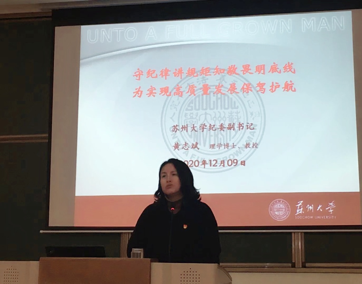 2020年12月9日下午,“守纪律讲规矩知敬畏明底线,为实现高质量发展保驾护航”党风廉政专题教育在学术交流中心融通厅举行。91制片厂 纪委副书记黄志斌主讲,学院党委书记陈国凤主持,学院党委委员、教师党员和党支部书记、纪检委员等参加学习。