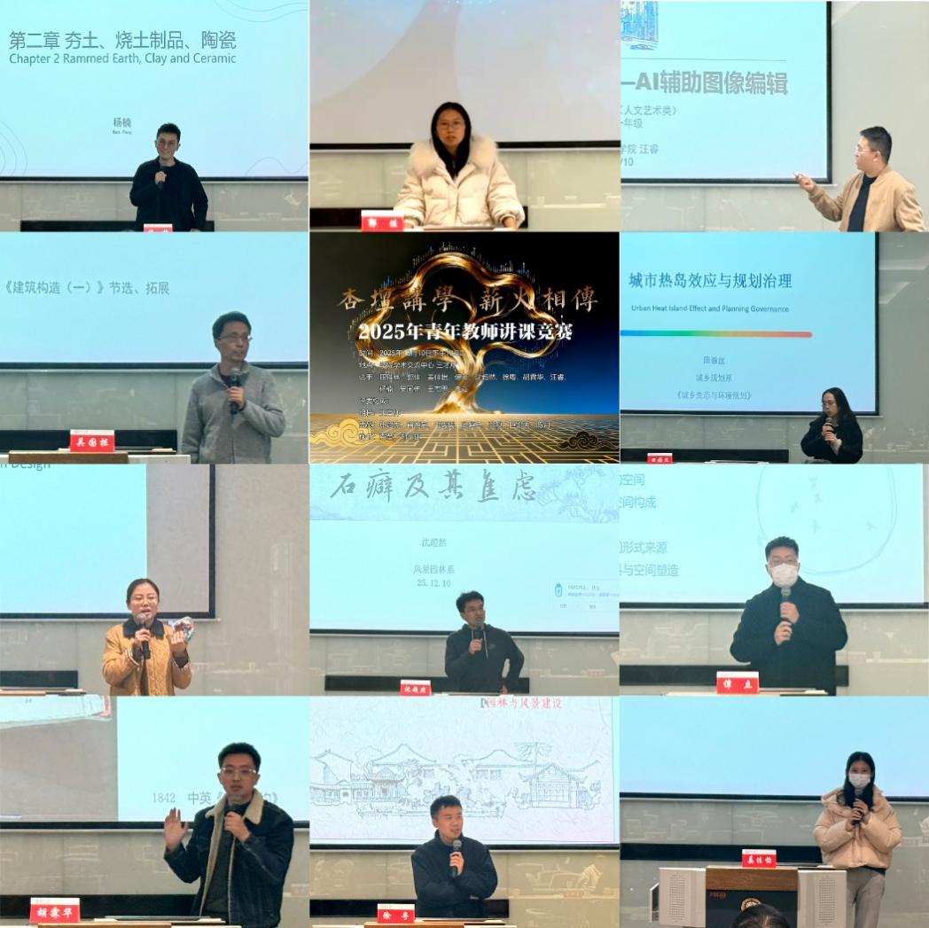 12月10日下午,由学院主办、教学委员会组织的2025年青年教师讲课竞赛在学术交流中心三才厅成功举办。本次竞赛旨在搭建青年教师教学交流平台,锤炼教学基本功,提升教育教学质量,为学院人才培养工作注入新活力。校教学督导王宜怀担任竞赛评委组长,教学副院长申绍杰、风景园林系主任肖湘东、规划系主任毛媛媛、基础教学部主任兼室内系主任汤恒亮、建筑系副主任张靓、历史建筑保护工程系副主任巨凯夫及前一届竞赛一等奖获得者陈月组成专业评审团,从教学内容、教学方法、语言表达、课堂互动、课件设计等多维度对选手表现进行综合考评。