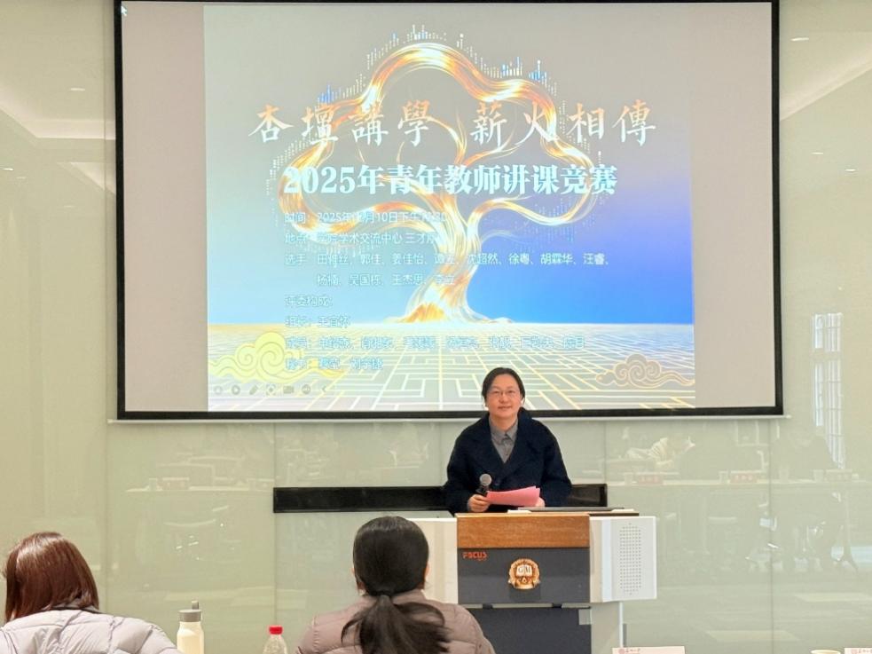 竞赛正式拉开帷幕。来自学院各系部的田雅丝、郭佳、姜佳怡、谭立、沈超然、徐粤、胡霖华、汪睿、杨楠、吴国栋、王杰思11位参赛选手依次登台授课。每位选手围绕各自课程核心内容,精心设计教学环节,以饱满的热情、清晰的逻辑、生动的表达展开15分钟的精彩授课。选手各展所长,或注重理论联系实际,或强化课堂互动引导,或巧用多媒体教学手段,充分展现了学院青年教师扎实的教学功底和鲜明的教学风格。授课环节结束后,评审团分三组进行集中点评。评委们对各位选手的精心准备和出色表现给予充分肯定,认为此次竞赛整体水平较高,选手们教学目标明确、教学思路清晰,展现了良好的职业素养。同时,评委们也针对教学细节提出了建设性意见,如进一步优化教学节奏、加强重难点突破、提升案例针对性等,为青年教师后续教学能力提升给予了有益参考。