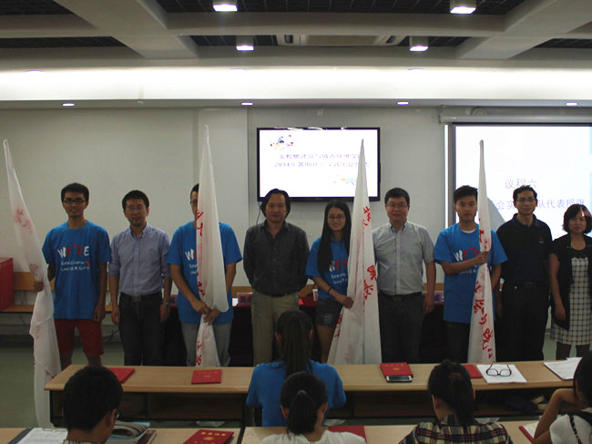 院团委副书记成龙首先介绍了2014年暑期社会实践工作筹备情况。从5月初第一轮项目征集,到6月中旬第二轮项目整合,经过层层筛选,学院最终成立了以出境研修、绿色环保、志愿服务、专业调研为特色的40多支社会实践优秀小分队,这些团队在学校暑期社会实践评比中取得了优异的成绩。紧接着,院党委副书记陈国凤宣读了2014年暑期社会实践暑期社会实践校级重点团队、院级重点团队名单和“我show我创意“项目征集获奖名单。