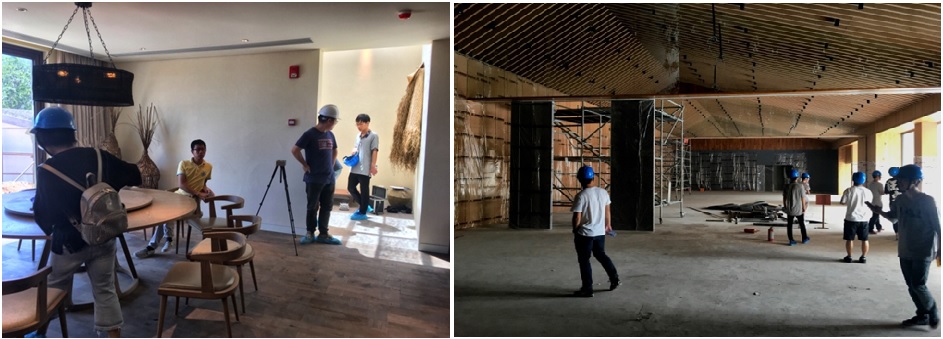 在8月28日,我们集体在老师的带领下,参观了金螳螂目前正在施工建设中的太湖花苑度假村,项目地址位于太湖的北岸,地处偏僻然而风景优美。处于度假村遥望远方,便可看见低矮的湖中小岛,耸立的寺塔,还有波光粼粼的水面。度假村四周风景优美,宁静怡人,而现场的建筑多处于施工状态,紧张的施工氛围充满了施工现场;同学们很多都是第一次近距离接触施工现场,尽管烈日炎炎,同学们却依然兴致勃勃。老师先带我们去参观了正在施工中的建筑,在未完工的建筑里,我们接触到了墙面,地板之下的建筑密码--交错的管道,线路,认识到它们才是整栋建筑完工之后能够正常运转的保证。然后老师还带领我们参观了已经完成的样板房,在样板房中,度假村的建筑风格更加明显,整体呈现出中国传统的渔家风格;样板房中的蓑衣,斗笠,鱼篓以及楼梯上麻绳的编织物,这些原生态的元素充满了度假村的整体构思,让我们不禁憧憬起了以前太湖边渔家的悠然生活。老师们还在现场向我们介绍了度假村的设计构思,所用材料,以及施工的细节,伴随着讲解的实物,这些之前听起来飘渺的概念,当下却都十分真实可见了;期间,我们还自行参观了样板房,对于它的细节和构思,所用家具等都十分赞叹!