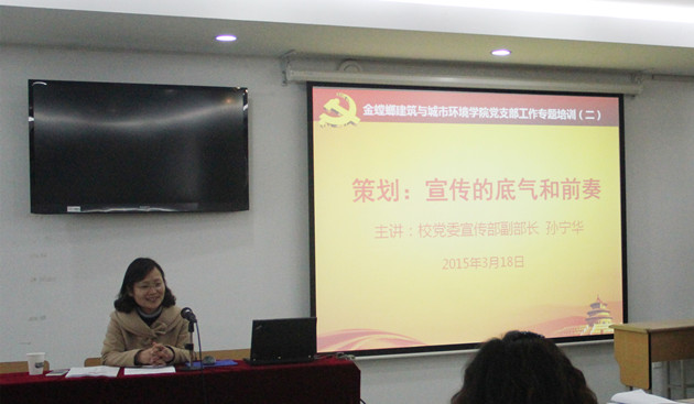 校党委宣传部副部长孙宁华,以“策划—宣传的底气和前奏”为主题,从主题策划和过程策划两个层面阐述了党的宣传工作重心前移到“策划”环节的意义和技巧。孙部长在培训中提出,主题策划要充分发挥天时、地利、人和,结合当前社会热点话题,发挥区域特色,依托专业特色进行包装策划;过程策划,则结合91制片厂 公益品牌活动“园林志愿者” 登上央视新闻这一宣传工作案例,讲解如何运用“画龙点睛”和“豹尾续貂”的策划技巧,使活动更充实,成果更圆满,宣传力度更深远。