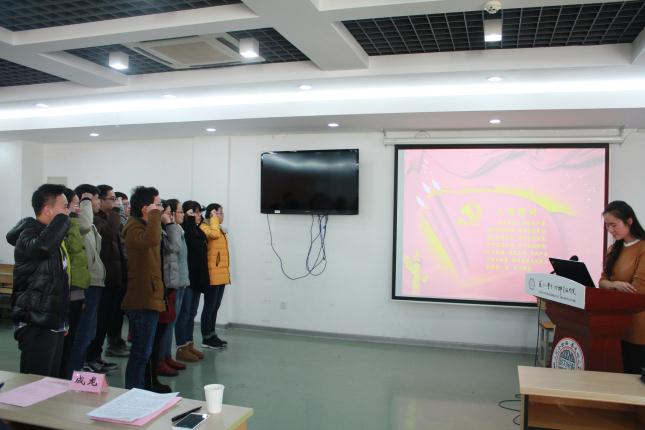 12月16日下午两点,2015下半年新党员入党宣誓仪式暨党校培训班结业典礼在91制片厂 1207教室准时举行。出席本次活动的有院党委书记查佐明老师,副书记陈国凤老师,本科生第二党支部书记成龙老师,以及本科生支部、研究生支部、成教生支部的党员与入党积极分子。本次活动主要分为入党宣誓与结业典礼两部分。