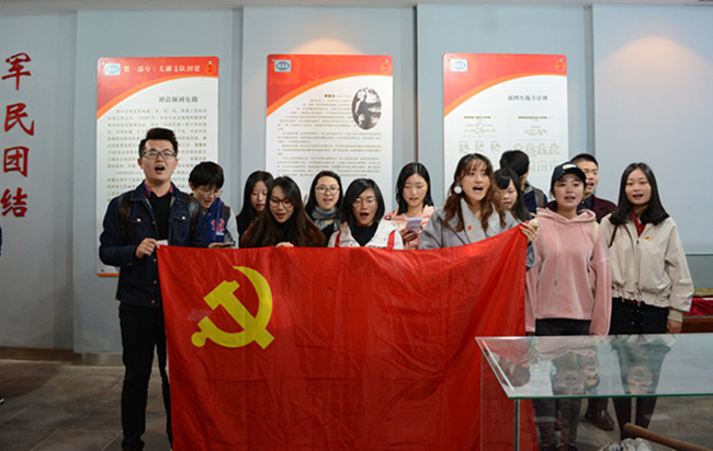 新四军太湖游击队,是在抗日战争中由中国共产党领导组建,新四军直接指挥的一支活跃在太湖地区进行抗日救国的人民武装战队。参观之前,全体师生党员同志在新四军太湖游击队纪念馆前面对党旗重温誓词,表示对党的坚定信念,承诺着对党的忠诚和奉献的决心。
