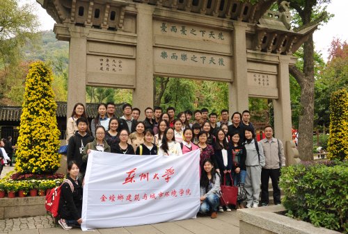 11月9日,金螳螂建筑与城市环境学院组织研究生党员、入党积极分子40余人赴吴中区蒯祥园、太湖公园和天平山等地开展党日活动。学院党委书记查佐明、院长吴永发、专业老师滕育梅教授、组织人事秘书张国英应邀出席,与研究生一道兴致勃勃地探访名人胜迹、欣赏山水美景。