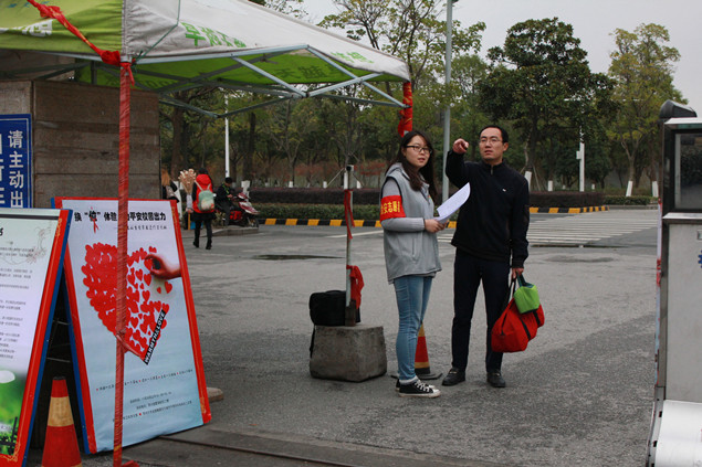 上午10:00,学生党员兵分两路,分别在独墅湖校区二期东门和北门开展活动。跟门卫大叔解释了来意之后,学生们受到了欢迎。铁云、孙天一两位搭档很快换上了制服,带上红袖章,有模有样地仿着大叔站在了东大门的一侧。活动初期,进进出出的人流让两位学生党员有些不知所措,只能忙乱地跟着大叔默默学习。门卫大叔一边热情地工作,一边耐心地教两位学生党员如何工作:当我们看到有同学骑车过来时,会提醒他们“同学你好,请下车”,如果有校外人员过来,我们要让他们出示证件等。听了大叔的讲解后,两位学生开始慢慢进入工作状态。虽有来往的同学疑惑,但看到一旁摆放的海报后,也渐渐明白并报以微笑。这给了两们学生党员莫大的鼓励。