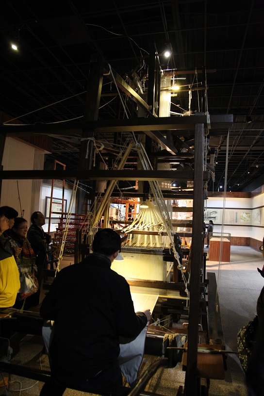 下午1:30左右,我们一行来到了吴江区鼎盛丝绸有限公司。2012年公司克服重重技术难点,成功地在现代先进织机上恢复苏州宋锦的生产并加以产业化,在国内属于首创,各项技术水平都远高于传统宋锦,处于国际领先水平,被称之为“新宋锦”。在公司办公室潘主任的带领下,我们分别参观了该公司创建的宋锦文化园、上久楷绸缎庄。在宋锦文化园,我们看到了珍贵的古代宋锦残片和精美的现代宋锦作品,了解了宋锦的起源、发展、衰落以及复兴的历史,老师们纷纷表现出了莫大的兴趣。当我们了解到了公司生产的宋锦在APEC会议中发挥了重要作用,是2014北京APEC领导人服装面料宋锦漳缎唯一供应商,在国际盛事中展现异彩的时候,大家为公司、为吴江和苏州感到欣慰和自豪。在文化园,我们还参观了宋锦的织机,这种织机与现代织机有明显差异,其中工艺的复杂程度和产品的精美程度都是超乎想象;老师们与纺织大师面对面交谈,了解技艺的传承。随后,我们参观了上久楷绸缎庄,源于清光绪年间(光绪24年,公元1889年)的苏州上久坎纱缎庄,是一家专门从事顶级宋锦及其他高端定制的商家,最早可以追溯到清初康熙、乾隆年间苏州织造局。秉持着生产顶级丝绸面料的理念,鼎盛丝绸有限公司加大宋锦的开发,深入挖掘宋锦文化,打破传统宋锦的设计理念,注重丝绸与文化和科技的结合,丰富产品的设计和文化内涵,加强上久楷绸缎庄的品牌营销,拓宽销售渠道,提高品牌影响力,让宋锦文化走出国门,推向世界。参观过程中,我们看到了丝绸大提花宋锦家纺、宋锦箱包、宋锦服饰、防辐射服等美轮美奂、巧夺天工的各类丝绸制品。