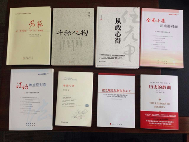 2016年赠送的图书总计八种:《风范——老一辈革命家“三严三实”事例选》、 《千秋人物》《把党规党纪刻印在心上——学习<中国共产党廉洁自律准则><中国共产党纪律处分条例>》、《全面小康热点面对面—理论热点面对面2016》、《法治热点面对面--理论热点面对面2015》、 《喻园心语》、《任彦申从政心得》、《历史的教训》。