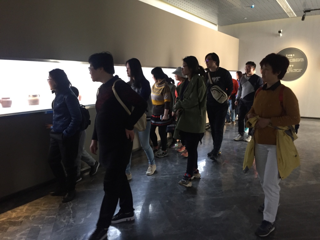 最后一站是紫砂博物馆。宜兴紫砂在原料,成型工艺、装饰、茶文化内涵上都富有民族智慧和创造性,是中国优良传统文化的代表性工艺体系,它所体现的工艺流程和独特风格具有不可替代性,能够反映出中华民族的文化创作性、文化特质和文化价值观。在展厅里,老师们流连于一件件紫砂作品前,认真听讲解员关于紫砂作品的故事,还前往紫砂壶工作室,看工艺师如何制作紫砂作品,深深为匠人们精湛的技艺所折服。紫砂大师们为了一件作品可能会耗费几年的时间,哪怕一点点微小的瑕疵都可能毁掉重来,这是一种追求极致的匠人精神。同时,在展厅内,老师们还看到了80后、90后工艺师的作品,虽然有些工艺师现在可能还名不经传,但是他们作品的创新力、突破力让这些年轻的工艺师们更有潜力。