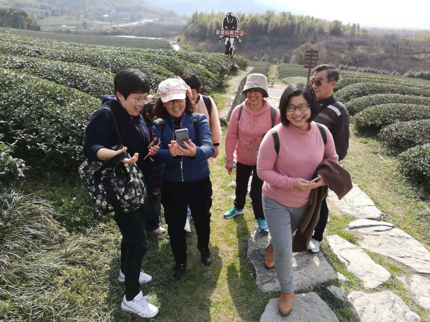 接着,老师们来到了茅山茶场,大片的茶园,修剪齐整,漫步其中,让人身心放松愉悦。站在茶园,闭目深呼吸,仿佛满是新嫩茶香;登高望远,大片的茶园让人心情顺畅,老师们纷纷掏出相机,留下美丽风景。当地人民合理利用茶园空间,一条环形的自行车道穿插于茶园间,成为了居民休闲健身的好去处。