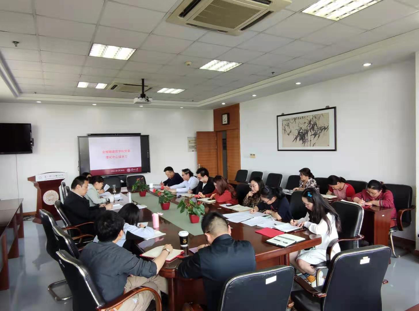 为进一步推动党史学习教育的开展,4月26日下午,学院党委理论学习中心组(扩大)学习会在2515会议室进行,学习内容是学习全国两会精神,党委副书记薛曦领学《政府工作报告》和全国人大常委会工作报告,副院长雷诚、副院长吴尧结合工作实际分别重点发言。党委书记陈国凤总结,不仅要学习、贯彻两会精神,同时结合党史学习教育,抓好学院中心工作,为学院 “十四五”开好局起好步提供坚强保障。