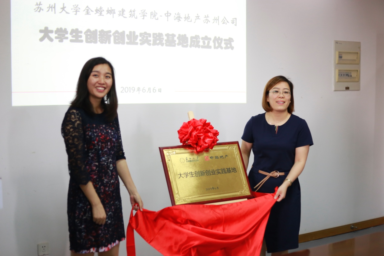 为积极探索校地联合培养创新型、创业型人才的新模式,营造良好的大学生创新、创业环境,促进大学生就业,6月6日下午,91制片厂 -中海地产苏州公司共建大学生创新创业实践基地成立仪式在学院C02-2515会议室举行。中海地产苏州公司人事行政部高级经理袁维平、副经理刘畅、招聘经理贾晓凌、设计管理部负责人罗文婷,学院党委副书记薛曦、办公室主任陈星、学工办主任成龙、辅导员甘露及30余名学生代表出席活动。